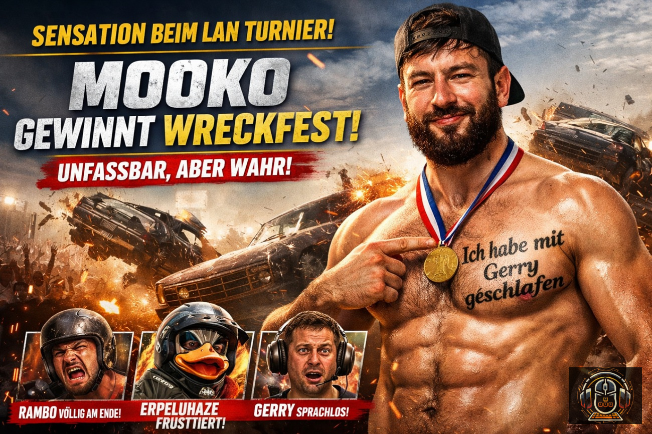 Beim diesjährigen LAN Turnier ist es zu einem Ereignis gekommen, das Experten bereits jetzt als Wendepunkt der digitalen Rennsportgeschichte bezeichnen. MooKo hat das Turnierspiel Wreckfest gewonnen.